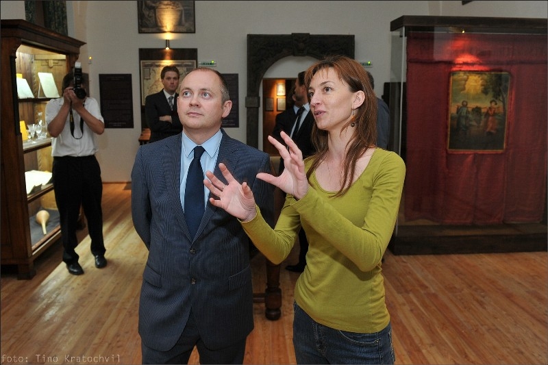 Pan hejtman si výstavu podrobně prošel ještě před slavnostním otevřením a po přestřižení pásky se do výstavy znovu vrátil v doprovodu přítomných hostů. Při odchodu výstavě popřál spokojené návštěvníky a do návštěvní knihy zapsal: